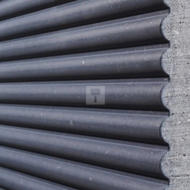 De afwerking Blue Canna bestaat uit afwisselend afgeronde halve maantjes en vlakke strips. De afgeronde verhoogde strips zijn 20 mm breed en 8 mm diep, terwijl de vlakke verzonken strips 5 mm breed zijn.