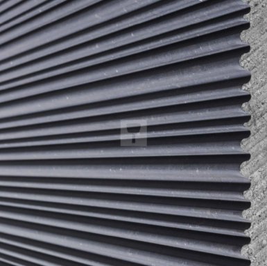 De Blue Fluctus afwerking heeft een afwisselend patroon van verhoogde en verzonken ronde ribbels die parallelle U-vormige groeven vormen (steekbreedte: 7 tot 13 mm; diepte: 4 tot 6 mm).