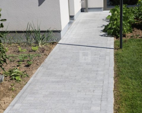 Het licht getextureerde oppervlak geeft hem een antislipeffect, nog versterkt door de vele voegen. Toch blijft de steen aangenaam aanvoelen onder blote voeten. Perfect voor wandelpaden of opritten.